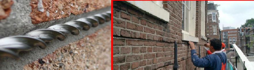 Om weer verbinding in het gescheurde metselwerk te krijgen kan er wapening geplaatst worden. De roestvast stalen wokkelvormige wapening, welke gebruikt wordt bij het stabiliseren van het gescheurde metselwerk, heeft een dusdanige vorm dat deze gelijktijdig sterk maar toch ook door zijn flexibiliteit de noodzakelijke bewegingen in het metselwerk op kan nemen.