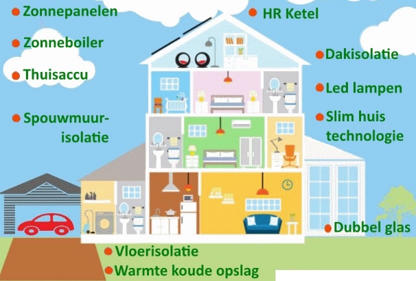 Er zijn talloze maatregelen toe te passen zoals het plaatsen van zonne- panelen en warmte pompen maar ook het plaatsen van isolerend glas en het toepassen van vloer of gevelisolatie.