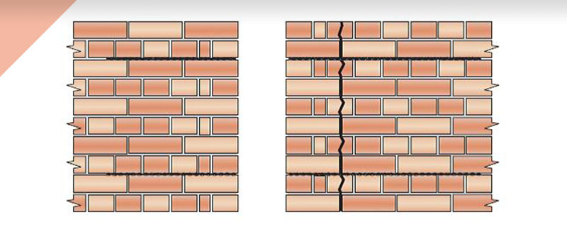 Scheurherstel in steens metselwerk op hoek d.m.v. lintvoegwapening